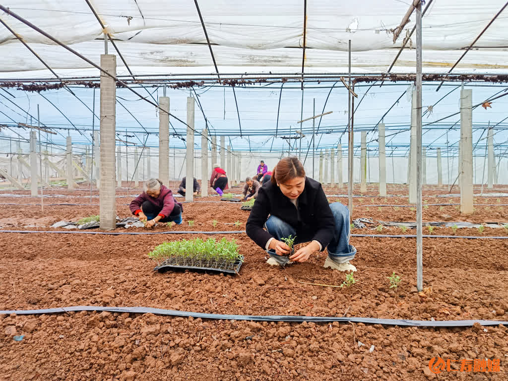 近日,在谢安镇新民村桔之萄家庭农场的温室大棚内,工人们正忙着栽种“冰草”小番茄苗。该品种是采用生物有机菌肥培育的绿色生态富硒水果,亩产可达8000至12000斤,亩产值约8万元,具有广阔市场前景。