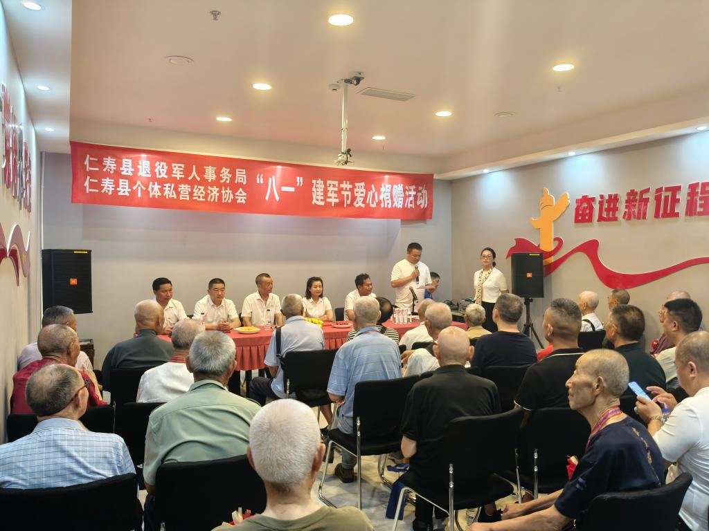 为热烈庆祝中国人民解放军建军98周年,弘扬拥军优属优良传统,营造全社会尊军崇军的浓厚氛围,仁寿县退役军人事务局联合县个体私营经济协会,于2025年7月29日举办以“致敬峥嵘岁月,传承军旅精神,凝聚社会温情”为主题的拥军活动。活动通过军民互动、征集寄语、慰问座谈等形式,凝聚社会力量向退役军人及军属传递关怀与敬意。