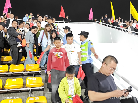 赛事落幕,人潮渐散。面对散场高峰的瞬时冲击,执法人员在关键点位科学引导、有效分流,迅速实现看台清空、广场复原、道路畅通。全程未发生拥挤滞留,秩序恢复如初。