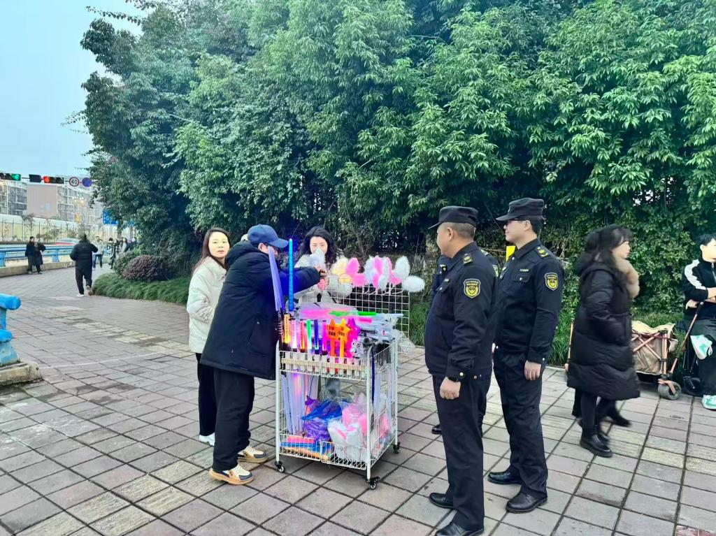 在严格执法的同时,执法人员始终以服务为导向,主动为观众提供路线指引、咨询解答等便民服务,对老人、儿童等群体给予特别关照。散场阶段,通过耐心引导与有序组织,保障了观众安全、顺畅离场,实现了秩序与温情的有效融合,让市民在畅享精彩演出的同时,也感受到城市管理的细致与温度。