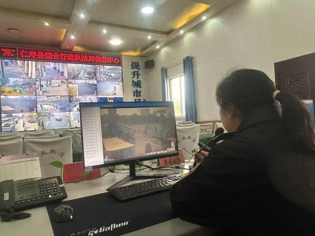 依托“平安仁寿”智能监控平台,对体育场周边及主要道路开展全时段视频巡检。创新运用“视频巡查+远程喊话”非现场执法模式,实时发现并纠正违规行为。建立“线上调度+线下响应”联动机制,调度中心与辖区中队无缝衔接,问题发现即接报、即转报、即处置,打造“一屏观全域、一网管全程”的智慧保障体系。