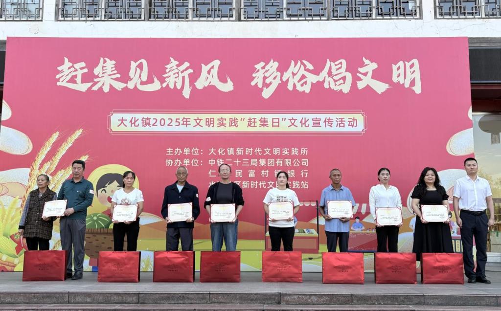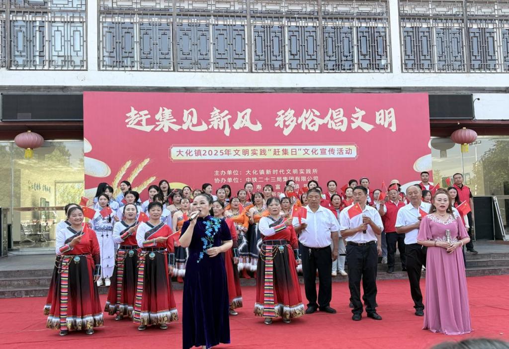 为推进移风易俗,深化文明新风,9月25日上午,大化镇新时代文明实践所联合中建二十三局集团有限公司、仁寿民富村镇银行、水利社区新时代文明实践站等单位共同举办“赶集见新风 易俗倡文明”——大化镇2025年9月文明实践“赶集日”文化宣传活动。