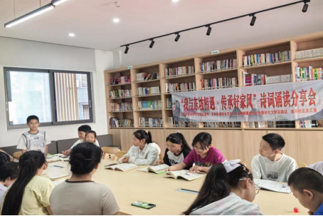 近日,文林街道金马社区关工委联合新时代文明实践站,在社区“乐享书吧”温馨举办了“我与东坡相遇·传承好家风”诗词诵读分享会。辖区多名青少年儿童兴致勃勃地参与其中,现场书香氤氲、笑语盈盈。