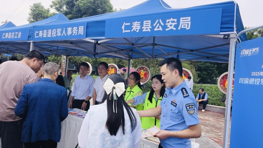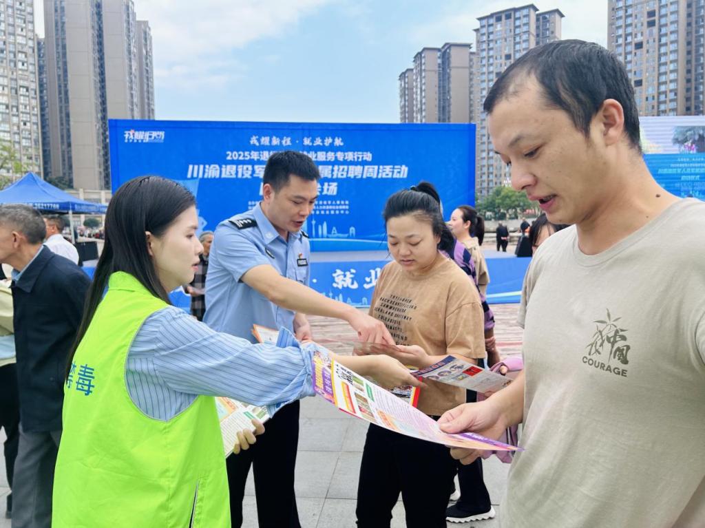 为扎实推进退役军人服务保障工作,拓宽就业渠道,同步强化退役军人识毒、防毒、拒毒的意识和能力,筑牢其回归社会、投身建设的平安防线,2025年10月15日,仁寿县禁毒专项工作组联合怀仁街道办开展“戎耀新程 就业护航——2025年退役军人就业服务专项行动”,同步开展禁毒宣传教育活动,成效显著。