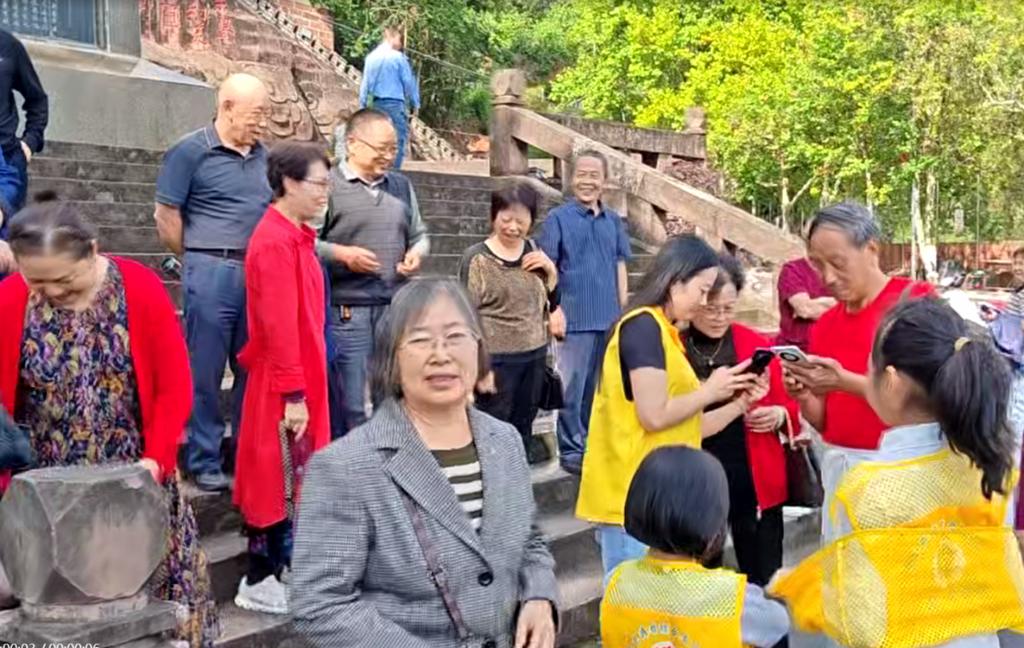 活动现场,身着黄色志愿服的“小龙人”们格外亮眼。在景区入口及主要景点,他们化身“活地图”,耐心解答游客疑问,从路线规划到景点历史,细致讲解让游客旅途更添顺畅;遇到携带行李的游客时,主动上前帮忙搬运,用热情笑容驱散游客旅途的疲惫。“小朋友讲解得特别清楚,还帮我们找到最佳拍照点,太贴心了!”来自成都的游客李女士点赞道。