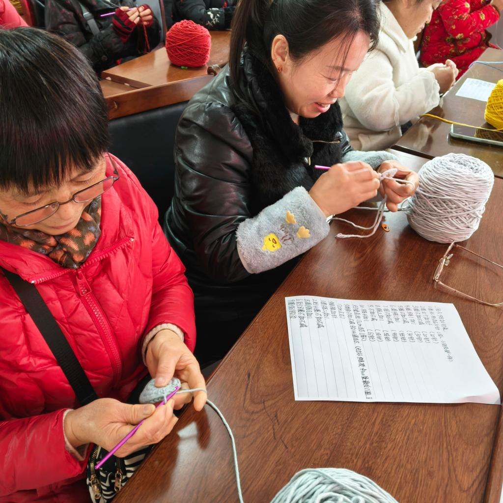 本次活动聚焦手工编织,面向社区留守妇女开展钩织帽子、毛衣等实用制品技能培训。活动采取“技能培训+产品回收”的闭环服务模式,确保学有所成、学有所用。培训过程中,专业讲师通过理论讲解、现场示范与手把手教学等方式,确保学员扎实掌握技术要领。