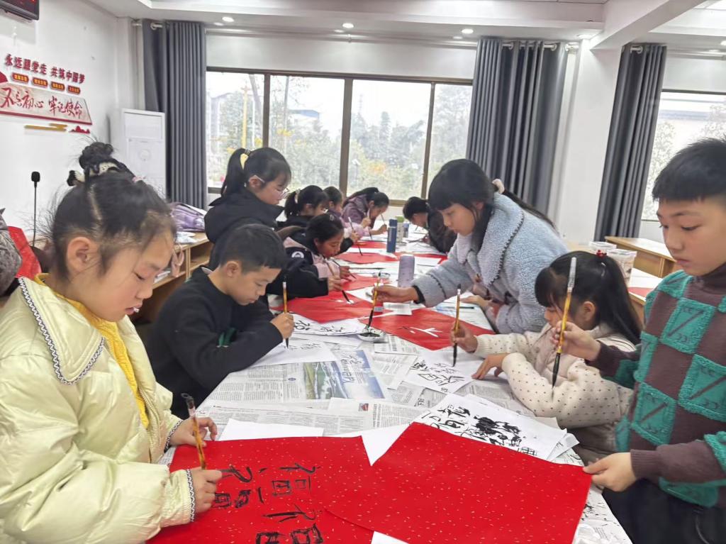 在剪纸环节中,小朋友们满怀热情地拿起剪刀,小心翼翼地按照示范的样子开始裁剪。社区的志愿者们也在一旁耐心地指导,帮助小朋友们解决遇到的问题。随着活动的进行,小朋友们的剪纸手法越来越熟练,一张张精美的剪纸作品逐渐诞生了。在趣味写福字环节中,社区志愿者同样先为小朋友们讲解了福字文化内涵和不同写法风格,如楷书的端庄、行书的飘逸、隶书的古朴等,还介绍了春节贴福字的传统习俗。有的小朋友们跃跃欲试,有的先在纸上进行轻轻临摹,熟悉笔锋走势;有的先用铅笔浅浅勾勒出福字轮廓,再落笔书写。