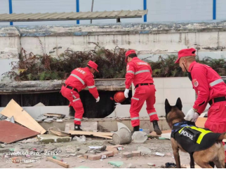 ——仁寿县应急救援志愿者协会开展“救援特种兵”——搜救犬搜救演练 模拟地震搜救、解救被困人员。日前,仁寿县应急救援志愿者协会(仁寿飞虎队)开展了一场模拟地震现场,“救援特种兵”搜救犬进行活体搜救实战演练。演练模拟仁寿县新城区发生地震后,房屋垮塌人员被困,立即使用搜救犬搜救人员的实战搜救演练。 演练中,两名参演人员分别扮演被困人员。一名“被困人员”掩埋砖石中,另一名则被困在泥土中。救援队人员立即启用搜救犬进行人员搜救,搜救犬接收到搜救指令后,立即展开地毯式搜索,被困人员很快就被发现,搜救犬大声吠叫,示意救援人员进行施救,被困人员及时得到救援救治。 此次实战搜救演练,为快速响应、高效应对、联合救援、妥善处置进行磨炼,提升了救援队伍在救援现场的应急能力及实战水平,同时为以后开展联合救援行动积累了实战经验。