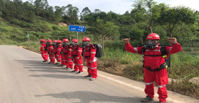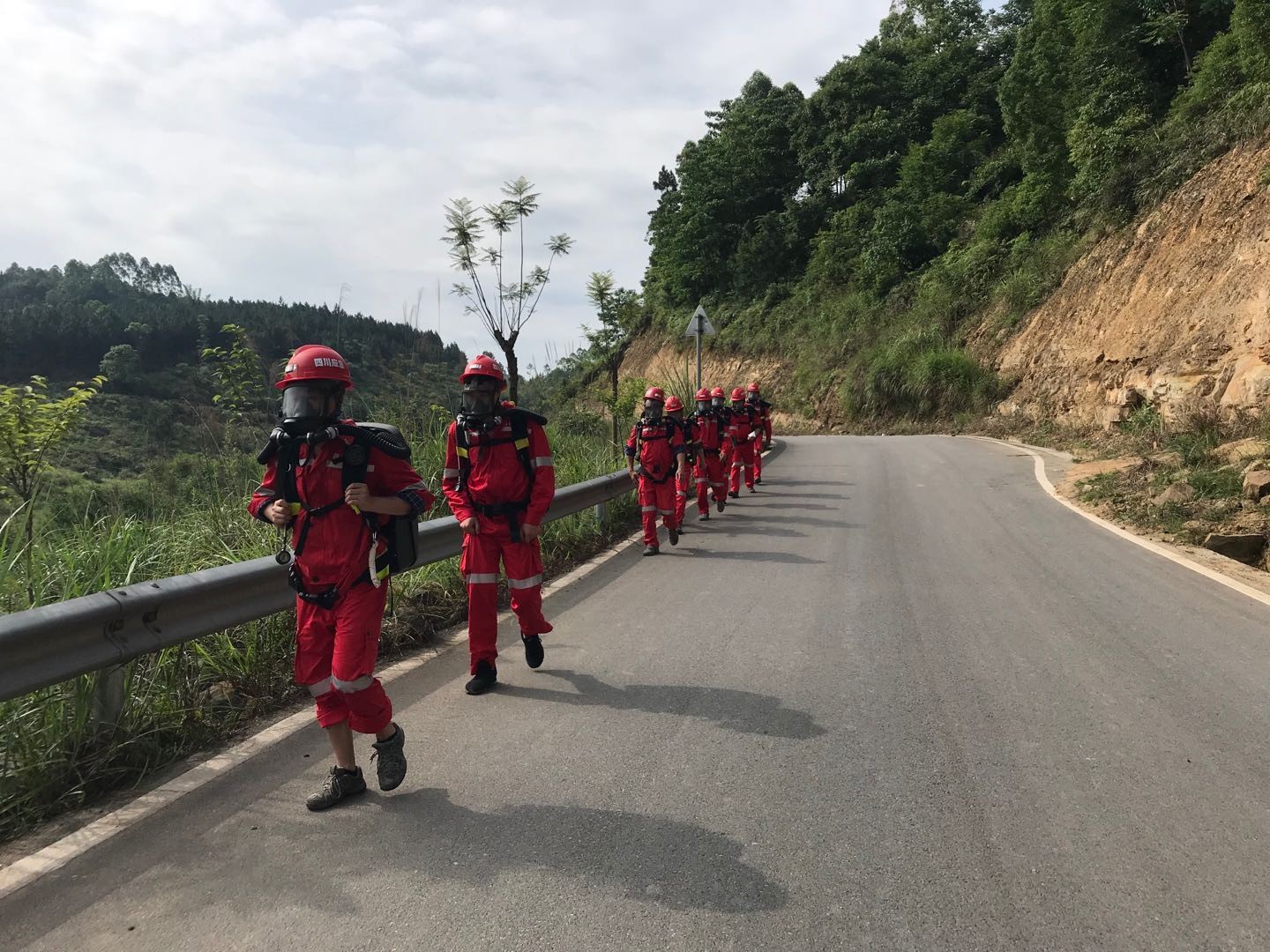 眉山市矿山救护队为深入开展好第十九个全国“安全生产月”活动,提升队伍应急救援处置能力,按照“安全第一、预防为主”的战训方针,于6月15日组织全体指战员开展佩机战备训练。 在中队长的统一指挥下,所有指战员着战斗服佩戴HY4Z正压氧气呼吸器,顶着高达360C的烈日高温天气,背负20余公斤的呼吸器等装备,从基地徒步前往5公里外的目的地并返回,全程10余公里,用时约3小时30分钟,所有指战员保质保量完成佩机训练任务,达到佩机训练的预期效果。 通过此次机佩训练,一是检验了指战员抢险救援快速反应能力;二是检验了指战员正压氧呼吸器佩机适应能力;三是检验了指战员实战身体素质及装备操作能力。