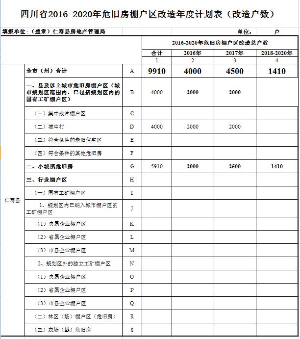 四川省2016-2020年危旧房棚户区改造年度计划表(改造户数)