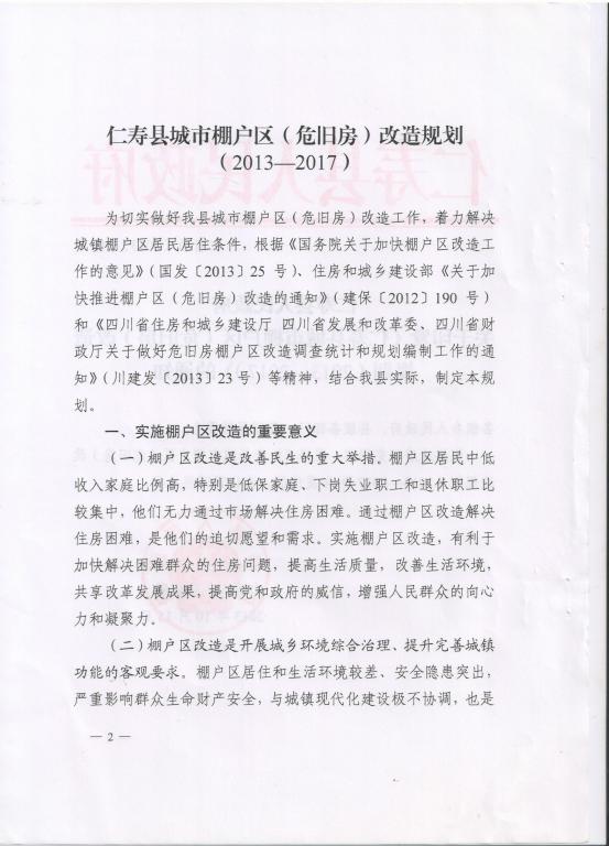 仁寿县城市棚记区(危旧房)改造规划(2013-2017)