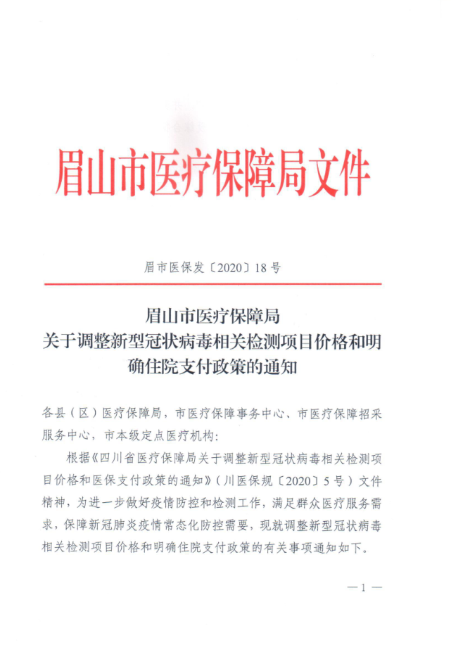 | 仁寿县医保局转发眉山市医保局关于调整新型冠状病毒相关检测项目价格和明确住院支付政策的通知 | ||||||||||||||||||