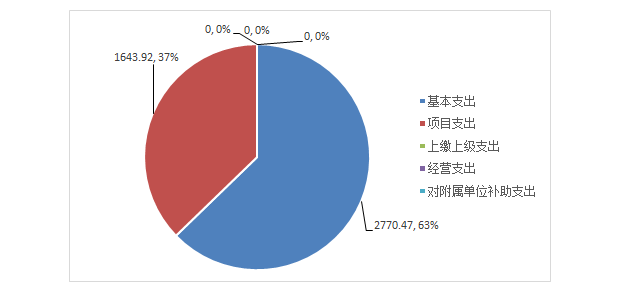 2019年本年支出合计4414.39万元,其中:基本支出2770.47万元,占62.76%;项目支出1643.92万元,占37.24%;上缴上级支出0.00万元,占0%;经营支出0.00万元,占0%;对附属单位补助支出0.00万元,占0%。