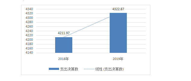 2019年一般公共预算支出决算数为4322.89,完成预算100%。其中: