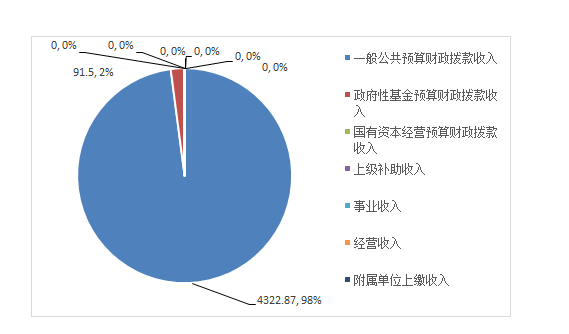 2019年本年收入合计4414.37万元,其中:一般公共预算财政拨款收入4322.87万元,占97.93%;政府性基金预算财政拨款收入91.50万元,占2.07%;上级补助收入0.00万元,占0.00%;事业收入0.00万元,占0.00%;经营收入0.00万元,占0.00%;附属单位上缴收入0.00万元,占0.00%;其他收入0.00万元,占0.00%。