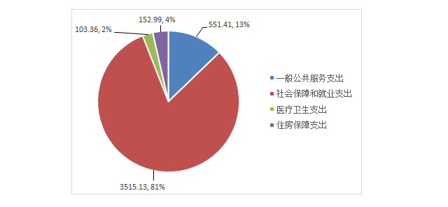 2019年一般公共预算财政拨款支出4322.89万元,主要用于以下方面:一般公共服务(类)支出551.41万元,占12.76%;社会保障和就业(类)3515.13万元,占81.31%;医疗卫生支出(类)支出103.36万元,占2.39%;住房保障支出(类)支出152.99万元,占3.54%。
