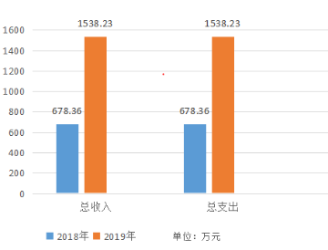 2019年度收、支总计1538.23万元。与2018年相比,收、支总计各增加859.87万元,增长126.76%。主要变动原因是:因人员变动,职工工资增长和“五险一金”等费用增加,单位实施项目增加。