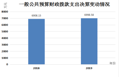 2019年一般公共预算财政拨款支出6998.58万元,占本年支出合计的18.12%。与2018年相比,一般公共预算财政拨款增加90.13万元,增长1.30%。主要变动原因是乡镇机构改革。
