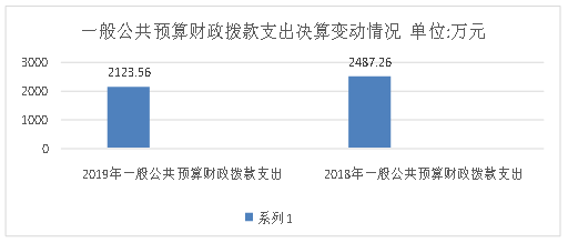 2019年一般公共预算财政拨款支出3927.6万元,占本年支出合计的74.99%。与2018年相比,一般公共预算财政拨款增加2872.57万元,增长272.28%。主要变动原因是拆乡并镇,当年收支数为合并前3个乡镇的汇总数。