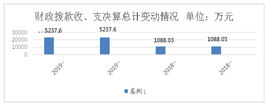 2019年财政拨款收、支总计5237.6万元。与2018年相比,财政拨款收、支总计各增加4149.57万元,增长381.39%。主要变动原因是拆乡并镇,当年收支数为合并前3个乡镇的汇总数。