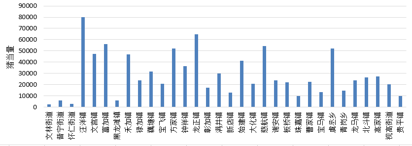 注:1.其他畜禽按猪的养殖量折算; 2.如遇国省政策调整,按调整后的政策执行。 1.8 划定方案 1.8.1 畜禽养殖禁养区 (1)饮用水水源保护区 包括仁寿县境内经批准划定的2处城市集中式饮用水水源地(黑龙滩水库眉山市中心城区饮用水水源保护区、黑龙滩水库仁寿民生隧洞饮用水水源保护区)以及1处乡镇集中式饮用水水源地的一级保护区和二级保护区。 (2)风景名胜区 黑龙滩省级风景名胜区的规划范围内。 (3)城镇居民区和文化教育科学研究区 仁寿县各乡镇(街道)场镇(集镇)建成区范围内(含已撤并乡镇的场镇建成区)禁止建设畜禽养殖场。 (4)工业园区 仁寿经济开发区建成区范围内。 (5)其他区域 法律法规规定的其他禁止建设养殖场的区域。 1.8.2 畜禽养殖限养区 (1)饮用水水源准保护区 境内城市集中式饮用水水源地(黑龙滩水库眉山市中心城区饮用水水源地、黑龙滩水库仁寿民生隧洞饮用水水源地)的准保护区。 (2)重要河流岸带 境内球溪河、越溪河干流河道水域及沿岸两侧纵深各500米以内陆域,龙水河、清水河、沙溪河、王店河、粤江河、宝马河、金马河、富谢河8条河流干流河道水域及沿岸两侧纵深各300米以内的陆域,其余23条河流干流河道水域及沿岸两侧纵深各200米以内的陆域。 (3)重要渠道 东风渠、南干渠、东干渠、北分干渠、松林干渠、方家干渠、满井干渠、富加干渠填方渠道坡脚或挖方渠道渠顶向外各18米以内区域(管理和保护范围)。 (4)重点文物保护单位 境内16处省级以上文物保护单位的保护范围和建设控制地带内。 (5)城镇居民区和文化教育科学研究区 仁寿县32个乡镇政府(街道办)所在地的场镇建成区范围外延500米以内区域,以及已撤销乡镇集镇建成区范围外延300米以内区域。 (6)工业园区 仁寿经济开发区规划范围内除禁养区以外的其他区域。 1.8.3 畜禽养殖宜养区 仁寿县行政区域范围内,除上述划定的禁养区、限养区以外,符合国民经济和社会发展规划、国土空间规划等规划的区域原则上均可作为畜禽养殖宜养区。 2畜禽养殖现状 2.1 畜禽养殖总量 根据统计数据,2023年末仁寿县全县畜禽存栏量为生猪64.19万头、牛1.26万头、羊20.31万只、家禽683.58万羽、兔62.47万只,生猪养殖占主导地位。总体来看,仁寿县各乡镇(街道)中,汪洋镇畜禽养殖量最多,约占全县畜禽养殖总量的8.71%(以折算猪当量计)。各乡镇(街道)畜禽养殖量详见表2-1和图2-1。 表2-1 2023年末仁寿县畜禽养殖量统计表