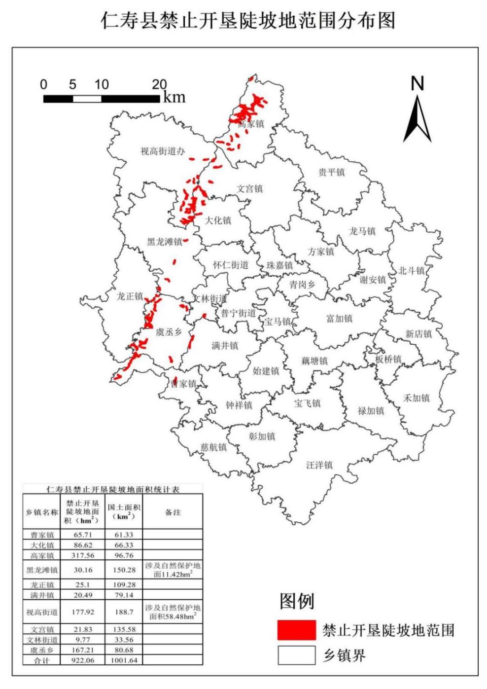 仁府规〔2025〕3号 为加强水土保持空间管控,强化农林开发等生产建设活动的监督管理,根据《中华人民共和国水土保持法》和《四川省〈中华人民共和国水土保持法〉实施办法》等法律法规规定,我县划定了禁止开垦陡坡地范围,现公告如下。 一、全县划定坡度在25度以上禁止开垦陡坡地共922.06公顷,土地利用类型为林地(以2023年国土变更调查成果数据为划定参考依据),涉及图斑84个,分布于曹家镇、大化镇、高家镇、黑龙滩镇、龙正镇、满井镇、视高街道、文宫镇、文林街道、虞丞乡等10个乡镇(街道)。具体分布范围和面积见附件。 二、禁止开垦陡坡地范围内严禁新开垦种植农作物,已经开垦的,按照国家有关法律法规及耕地保护、生态建设相关政策进行生态保护修复和监督管理。 三、在禁止开垦陡坡地范围内种植经济林的,应当科学选择树种,合理确定规模,采取水土保持措施,防止造成水土流失。 四、违反本公告规定,在禁止开垦陡坡地范围内开垦种植农作物的,按照《中华人民共和国水土保持法》等法律法规予以处罚。 五、本公告自2025年12月31日起施行,有效期5年。 特此公告。 附件:仁寿县禁止开垦陡坡地范围分布图 仁寿县人民政府 2025年12月30日 附件
