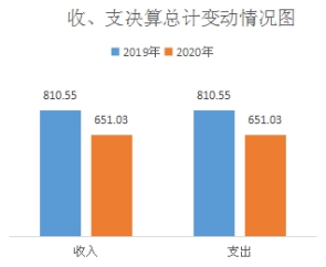 2020年度收、支总计651.03万元。与2019年相比,收、支总计各减少159.52万元,下降20%。主要变动原因是主要变动原因是2020年年初预算结合供销社综合改革进度,减少了综合改革项目开支150万元。
