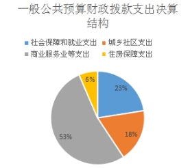 2020年一般公共预算财政拨款支出536.03万元,主要用于以下方面:社会保障和就业支出142.18万元,占23%;城乡社区支出115万元,占18%;商业服务业等支出333.81万元,占53%;住房保障支出40.65万元,占6%;