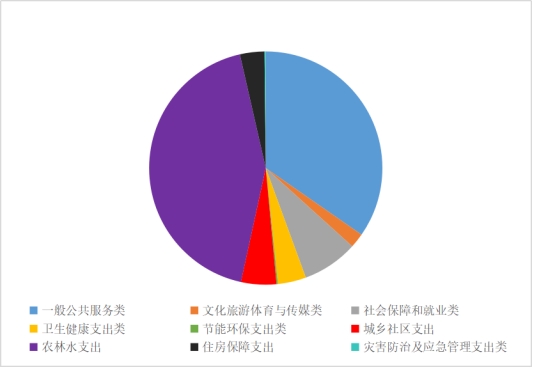 2020年一般公共预算财政拨款支出2292.87万元,主要用于以下方面:一般公共服务(类)支出794.93万元,占30.5%;教育支出(类)0万元,占0%;科学技术(类)支出0万元,占0%;文化旅游体育与传媒(类)支出46.65万元,占1.7%;社会保障和就业(类)支出177.09万元,占6.8%;卫生健康支出89.68万元,占3.4%;节能环保支出4.36万元,占0.1%;城乡社区支出112.06万元,占4.3%;农林水支出986.3万元,占37.9%住房保障支出77.81万元,占3%;灾害防治及应急管理支出4万元,占0.2%。