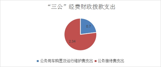 26.“三公”经费:指部门用财政拨款安排的因公出国(境)费、公务用车购置及运行费和公务接待费。其中,因公出国(境)费反映单位公务出国(境)的国际旅费、国外城市间交通费、住宿费、伙食费、培训费、公杂费等支出;公务用车购置及运行费反映单位公务用车车辆购置支出(含车辆购置税)及租用费、燃料费、维修费、过路过桥费、保险费等支出;公务接待费反映单位按规定开支的各类公务接待(含外宾接待)支出。