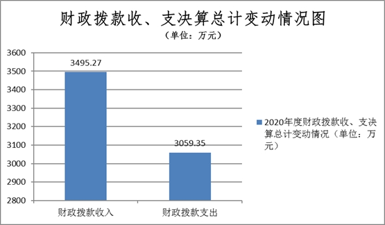 2020年度收入3495.27万元,支出3059.35万元,与2019年相比,财政拨款收入增加1061.11万元,增长43.59%;支出增加625.19万元,增长25.68%。与2019年相比,2020年主要变动原因是抗疫特别国债的增加。