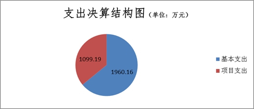 2020年本年支出合计3059.35万元,其中:基本支出1960.16万元,占64.07%;项目支出1099.19万元,占35.93%;上缴上级支出0万元,占0%;经营支出0万元,占0%;对附属单位补助支出0万元,占0%,年末结转结余435.92万元。