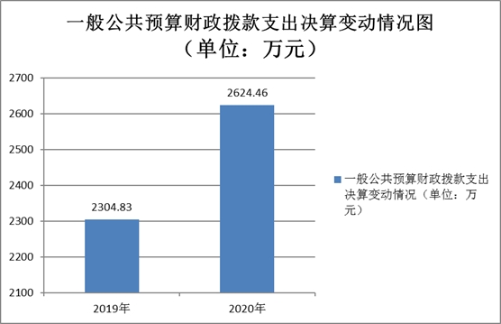2020年一般公共预算财政拨款支出2624.46万元,占本年支出合计的85.78%。与2019年相比,一般公共预算财政拨款增加319.63万元,增长13.87%。主要变动原因是农林水支出的增加。