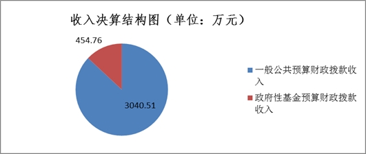 2020年本年收入合计3495.27万元,其中:一般公共预算财政拨款收入3040.51万元,占87.89%;政府性基金预算财政拨款收入454.76万元,占12.11%;上级补助收入0万元,占0%;事业收入0万元,占0%;经营收入0万元,占0%;附属单位上缴收入0万元,占0%;其他收入0万元,占0%。