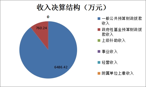 2020年本年收入合计7246.66万元,其中:一般公共预算财政拨款收入6486.42万元,占89.51%;政府性基金预算财政拨款收入760.24万元,占10.49%;上级补助收入0万元,占0%;事业收入0万元,占0%;经营收入0万元,占0%;附属单位上缴收入0万元,占0%;其他收入0万元,占0%。