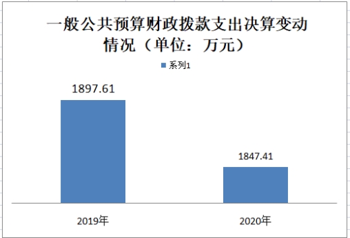 2020年一般公共预算财政拨款支出1847.41万元,占本年支出合计的96.91%。与2019年相比,一般公共预算财政拨款减少50.2万元,增长2.65%。主要变动原因是持续压减支出。