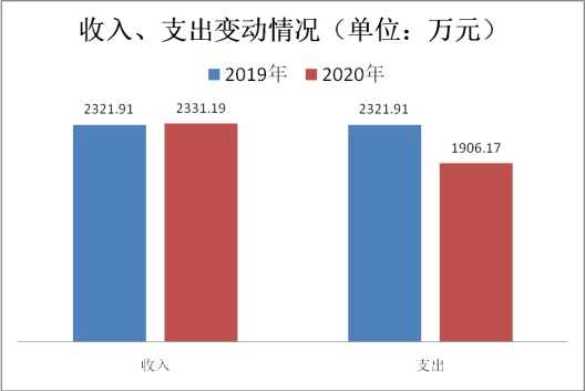 2020年度收入总计2331.19万元,支出总计1906.17万元,年末结转结余425.02万元。与2019年相比,收入增加9.28万元,增长0.4%,支出减少415.74万元,减少17.91%。主要变动原因是抗疫特别国债的增加和部分项目资金结转到下年。