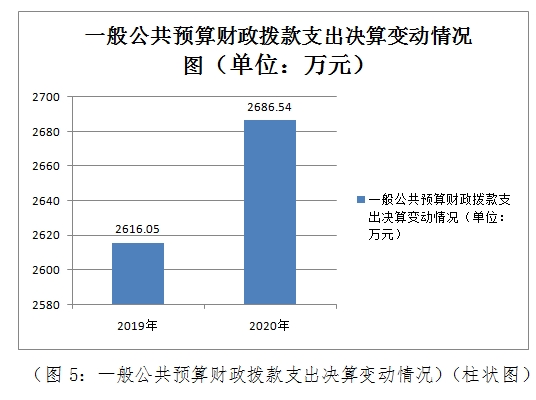 2020年一般公共预算支出决算数为2686.54万元,完成预算86.54%,年末结转结余417.66万元。其中: