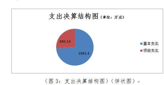 2020年本年支出合计2686.54万元,其中:基本支出1991.4万元,占74.13%;项目支出695.14万元,占25.87%;上缴上级支出0万元,占0%;经营支出0万元,占0%;对附属单位补助支出0万元,占0%,年末结转结余417.66万元。