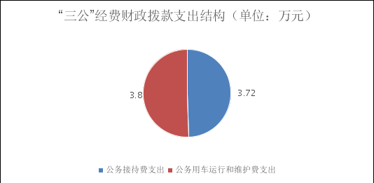 2021年“三公”经费财政拨款支出决算中,因公出国(境)费支出决算0万元,占0%;公务用车购置及运行维护费支出决算3.8万元,占50.5%;公务接待费支出决算3.72万元,占49.5%。具体情况如下:
