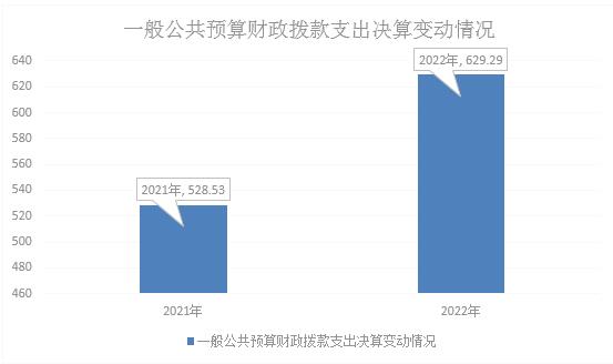 2022年一般公共预算财政拨款支出629.29万元,占本年支出合计的100%。与2021年相比,一般公共预算财政拨款支出增加100.76万元,增长19.06%。增加的主要原因是从2022年开始县财政增设了县级部门公共财力运行补助、公务员基础绩效奖按月发放以及调入2名公务员。