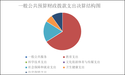 2022年一般公共预算财政拨款支出1058.82万元,主要用于以下方面:一般公共服务(类)支出0万元,占0%;教育支出(类)697.03万元,占65.83%;科学技术(类)支出0万元,占0%;文化旅游体育与传媒(类)支出0万元,占0%;社会保障和就业(类)支出191.57万元,占18.09%;卫生健康支出(类)66.99万元,占6.33%;住房保障支出(类)103.22万元,占9.75%。