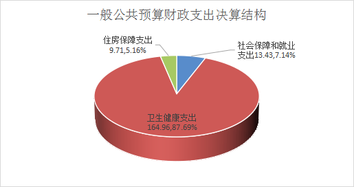 2022年一般公共预算财政拨款支出188.11万元,主要用于以下方面:一般公共服务(类)支出0万元,占0%;教育支出(类)0万元,占0%;科学技术(类)支出0万元,占0%;文化旅游体育与传媒(类)支出0万元,占0%;社会保障和就业(类)支出13.43万元,占7.14%;卫生健康支出164.96万元,占87.69%;住房保障支出9.71万元,占5.16%。