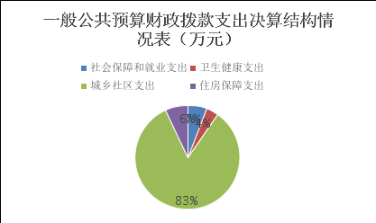 2022年一般公共预算财政拨款支出716.99万元,主要用于以下方面:城乡社区支出(类)支出596.86万元,占83.3%;社会保障和就业(类)支出42.55万元,占5.9%;卫生健康支出(类)26.84万元,占3.7%;住房保障支出(类)50.74万元,占7.1%。
