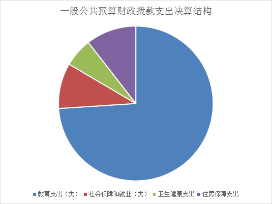 2022年一般公共预算财政拨款支出2194.25万元,主要用于以下方面:一般公共服务(类)支出0万元,占0%;教育支出(类)1623.26万元,占73.97%;科学技术(类)支出0万元,占0%;文化旅游体育与传媒(类)支出0万元,占0%;社会保障和就业(类)支出208.42万元,占9.50%;卫生健康支出131.80万元,占6.01%;住房保障支出230.77万元,占10.52%。