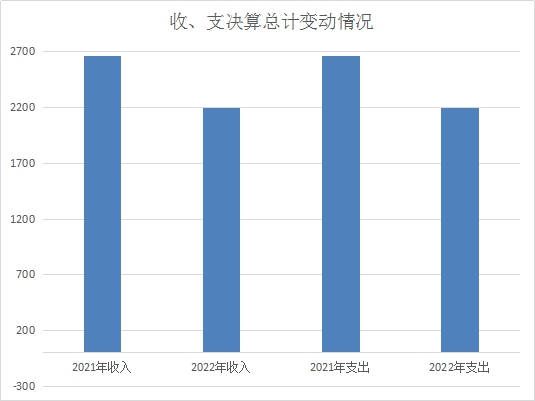 2022年度收、支总计2194.25万元。与2021年相比,收、支总计各减少471.60万元,下降17.69%。主要变动原因是教职工人数减少及学校校园环境的改善和学校校园文化的建设投入减少。