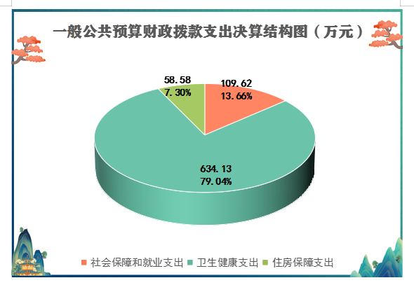 2022年一般公共预算财政拨款支出802.33万元,主要用于以下方面:一般公共服务(类)支出0万元;教育支出(类)0万元;科学技术(类)支出0万元;文化旅游体育与传媒(类)支出0万元;社会保障和就业(类)支出109.62万元,占13.66%;卫生健康支出634.13万元,占79.04%;住房保障支出58.58万元,占7.30%。