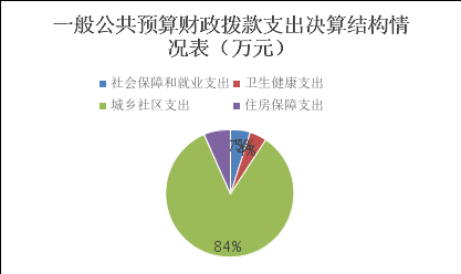 2022年一般公共预算财政拨款支出42.14万元,主要用于以下方面:城乡社区支出(类)支出35.42万元,占84%;社会保障和就业(类)支出2.15万元,占5%;卫生健康支出(类)1.79万元,占4%;住房保障支出(类)2.77万元,占7%。