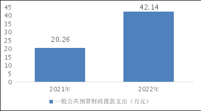 2022年一般公共预算财政拨款支出42.14万元,占本年支出合计的100%。与2021年相比,一般公共预算财政拨款支出增加21.88万元,增长107.96%。主要变动原因是2022年财政经费全额保障。