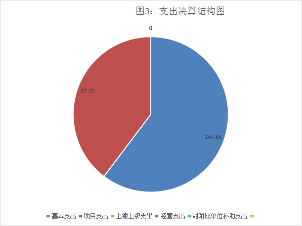 2022年本年支出合计245.09万元,其中:基本支出147.83万元,占60.32%;项目支出97.26万元,占39.68%;上缴上级支出0万元,占0%;经营支出0万元,占0%;对附属单位补助支出0万元,占0%。